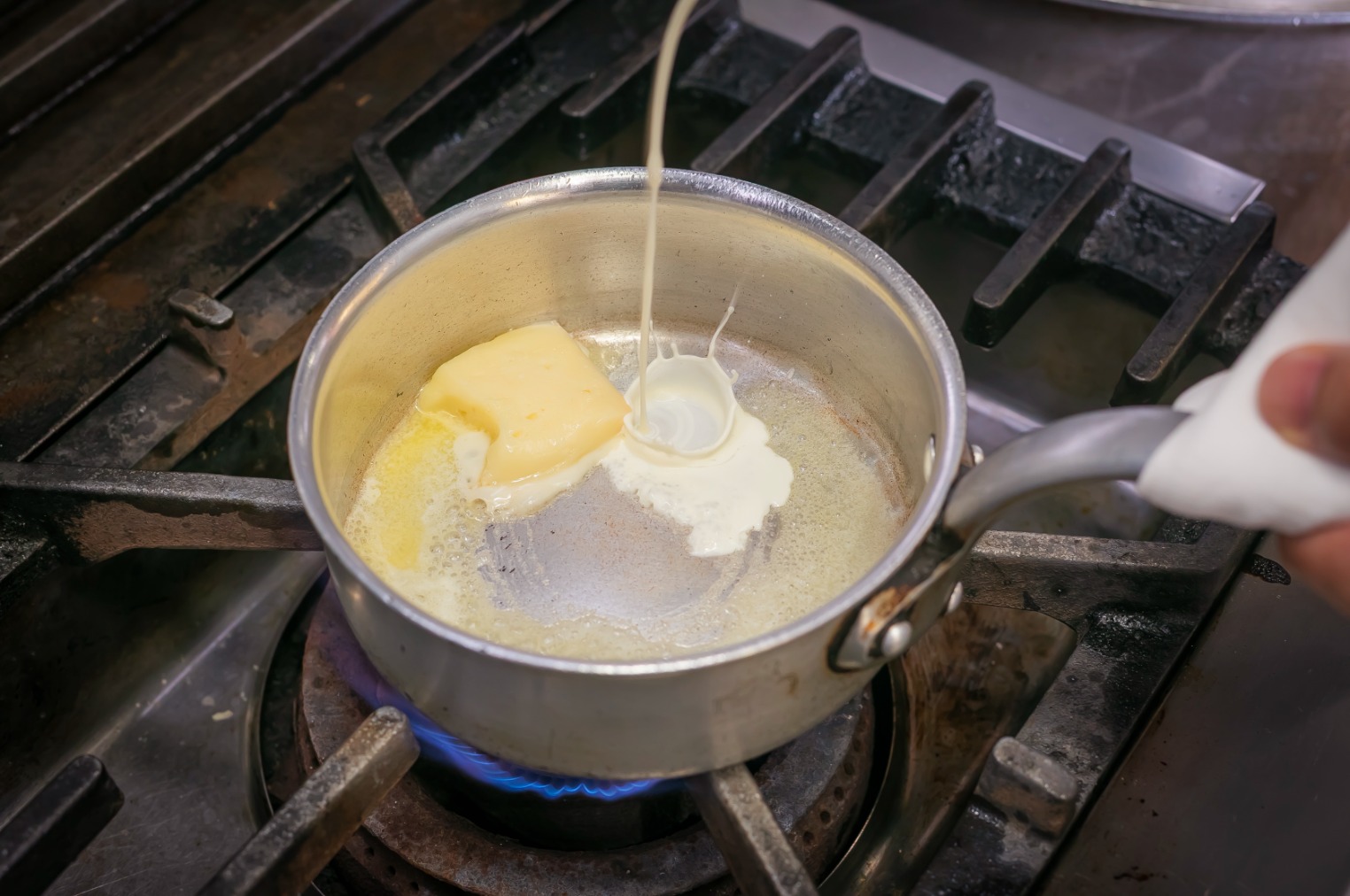 While still hot, mix it just enough to aerate and thicken it.