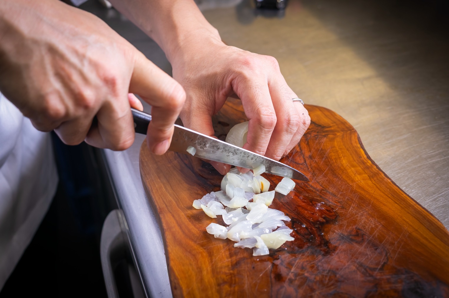 Chop the middle of the onion that you have scooped out.