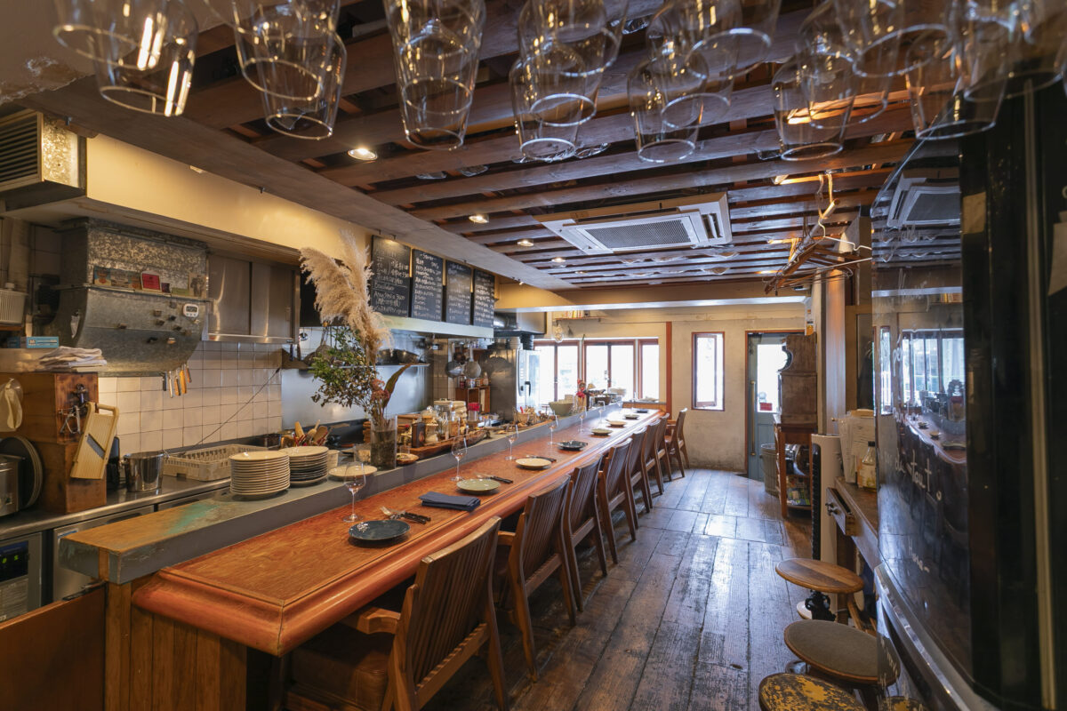 店内の奥には木の温もりを感じられるテーブル席も。リラックスできる空間で美味しい料理でお腹を満たせることから、Ataは平日でも予約のみで満席になるほどの人気店です。また、深夜2時までオープンしているため、「夜更けに美味しいものが食べたい」というときの駆け込み寺ならぬ、駆け込みレストランとして重宝するお客様も多いそう。