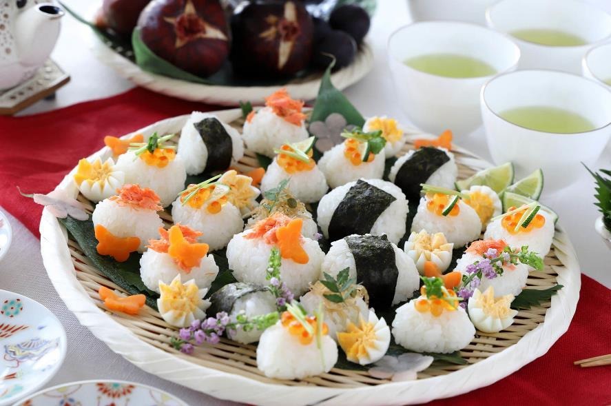 舉例來說,您可以在包裹飯糰時使用生火腿、生菜來取代海苔,或是將雞肉、黑橄欖末和香草等材料拌勻後,撒上粉紅胡椒、芝士粉等調味料,令飯糰顯得繽紛華麗。另外亦可以捏成小顆,以做出像西班牙下酒小菜Pintxos般的前菜。大家還能邊做邊聊,或者品嚐比較不同口味,從中享受社交樂趣。